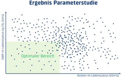 Aus dem optimalen Bereich aller möglichen Varianten wird eine „Short List“ für die detaillierte Variantenuntersuchung in Leistungsphase 2 abgeleitet. Durch diese sorgfältige Vorauswahl ist sichergestellt, dass alle vertieft geprüften Varianten voraussichtlich sowohl die ökologischen Nachhaltigkeitsanforderungen erfüllen als auch innerhalb des vorgesehenen Kostenrahmens liegen.